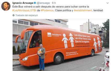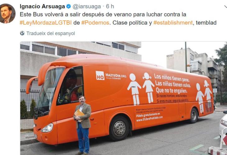 El grupuscle Valores en Baleares ha informat aquest dissabte, 22 de juliol, que ha començat les gestions perquè l'autobús amb missatges transfòbics d'HazteOir pugui visitar Palma durant el proper curs escolar.