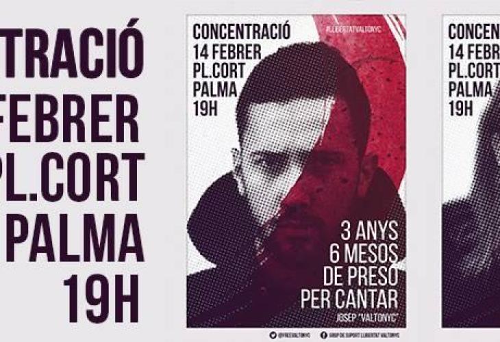 El Grup de Suport a Valtonyc, el raper mallorquí Josep Miquel Arenas, ha convocat una concentració per al dimecres, 14 de febrer a les 19 hores, per demanar «l'absolució de Josep i de tantes altres persones que estan sent jutjades per expressar les seves idees». La concentració serà a la plaça de Cort, a Palma.