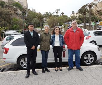 Aquest dijous, la batlessa Conxa Juanola, la regidora de Promoció Econòmica, Maria Membrive, el president de l’Agrupació de Taxis de Maó, José Navarro, i el vicepresident de Radio Taxi Menorca, Joan Polo, han presentat el nou Pla d’actuació en matèria de transport públic de viatgers en vehicles turisme per als anys 2018 a 2021, que contempla la concessió de llicències temporals per a la prestació del servei de taxi al municipi de Maó durant els mesos estivals.