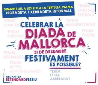 Un grup de persones que s'autoanomenen 'Estendard Festiu' han impulsat una trobada el pròxim dimarts 25 de setembre a les 21.00 hores a la Tertúlia per dur a terme un debat sobre la celebració de la Diada de Mallorca.