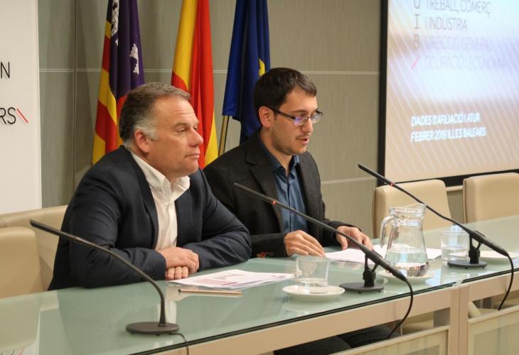 Les Balears han registrat 433.776 afiliacions a la Seguretat Social al febrer, dada que mostra un nou màxim històric d’afiliació en aquest mes i situa el territori en nivells anteriors a la crisi econòmica. D’aquesta manera les Illes acumulen 13 mesos consecutius de màxims interanuals. Respecte a fa un any l’afiliació ha crescut un 2,44 %, mentre que, respecte al mes anterior l’augment ha estat del 2,93 %, dada que es tradueix en 12.351 llocs de treball més respecte al gener i suposa que un de cada sis llocs de treball creats a l'Estat es va situar a les Balears.