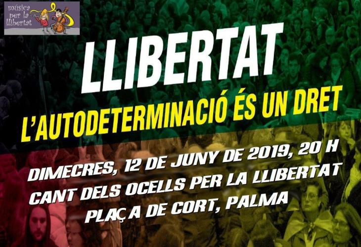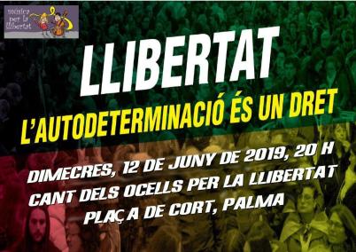 El dimecres 12 de juny tendrà lloc el ja tradicional 'Cant dels ocells' per la llibertat del presos polítics i exiliats catalans a Palma.