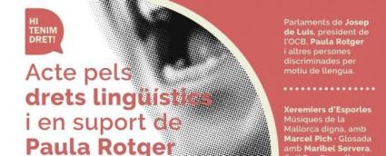 L'Obra Cultural Balear ha organitzat un acte pels drets lingüístics i de suport a Paula Rotger i altres persones discriminades per motiu de llengua el pròxim dimecres 2 d'octubre a partir de les 19.00 hores. La trobada tendrà lloc al centre Cotoner d'Esporles, i el programa és el següent: