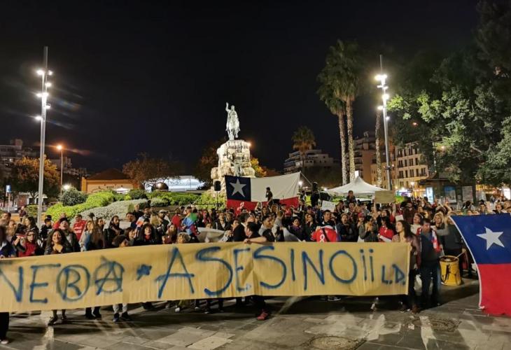 Més d'un centenar de persones es varen concentrar aquest dissabte a la plaça d'Espanya de Palma, en suport al poble xilè i dels seus drets socials i per demanar la fi de l'estat d'emergència.