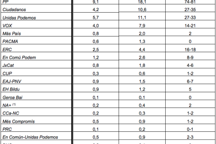L'independentisme arribaria la majoria absoluta al Principat a les eleccions espanyoles del 10-N, segons una enquesta del CIS feta abans de la sentència. ERC, JxCat i la CUP podrien arribar a aconseguir vint-i-sis diputats, dels quaranta-vuit en joc. Així, superarien la franja del 50% per primera vegada.
