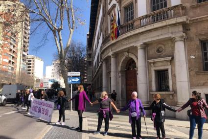 Centenars de persones han participat aquest dissabte a la via s'Alemanya de Palma en una cadena humana feminista contra la justícia patriarcal organitzada pel Moviment Feminista de Mallorca.
