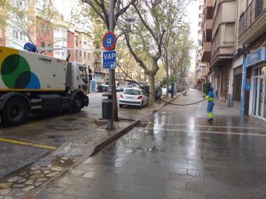 Aquest dimecres s'han prioritzat les zones amb més afluència de gent. S'estan emprant tres camions cisterna i dues baldejadores (agranadores dotades de sistemes d'aplicació d'aigua a pressió). Empren aigua i lleixiu. Estan actuant als següents carrers: