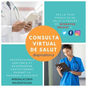 Quinze professionals sanitaris d’Atenció Primària de Mallorca atenen consultes de salut per mitjà de les xarxes socials, amb l’etiqueta #APMallorca. Aquest servei de consultes en línia es va posar en marxa divendres passat i ja ha resolt 462 consultes (102 per Twitter, 130 per Facebook i 230 per Instagram). Aquesta iniciativa pretén oferir respostes sanitàries als ciutadans que estan a ca seva i evitar, així, que augmenti la pressió assistencial als els centres de salut. Per respectar la intimitat dels pacients i la protecció de dades, la consulta virtual s’ha de fer amb un missatge privat al perfil APMallorca de Twitter, Facebook o Instagram.