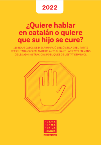 L'informe del 2022 analitza els casos de discriminació que varen arribar al coneixement de l'entitat i conclou que, en general, varen créixer un 19,2 % i varen arribar als 118 casos. D'aquests, 45 varen passar en l'àmbit sanitari. El que recull el report són casos en què treballadors públics varen exigir o pressionar un ciutadà perquè parlés en castellà i no s'expressés en català, en què es varen negar a prestar-li un servei perquè parlava en català, o, fins i tot, en què el varen insultar, vexar o humiliar per aquest motiu. Per a la Plataforma per la Llengua, aquests casos d'abús i tracte antiigualitari formen part d'un problema més gran de discriminació lingüística estructural a l'Estat espanyol, i estan lligats a la ideologia supremacista castellana del nacionalisme espanyol i al redactat discriminatori de la Constitució i les lleis.