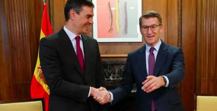 El president del govern espanyol, Pedro Sánchez, i el líder del Partit Popular espanyol, Alberto Núñez Feijóo, s'han reunit durant gairebé dues hores al Congrés dels Diputats, aquest divendres, en una trobada que ha costat molt de pactar.