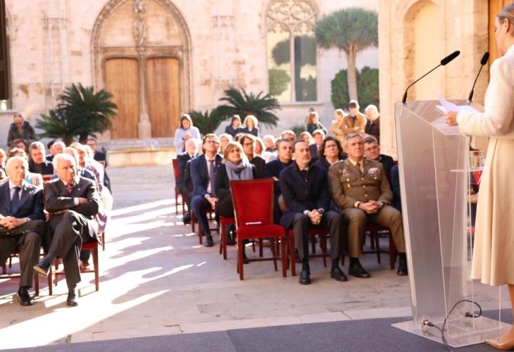 Durant l'acte, la presidenta del Govern ha lliurat una medalla amb l'escut de la Comunitat als 'Pares de l'Estatut'. En la seva representació, Francesc Tutzó ha reclamat «moderació, diàleg i tolerància» en el debat de les qüestions d'Estat.