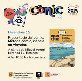 Presentació del segon número de la col·lecció Mètode Còmic, Aventura Natura II: els impactes als ecosistemes de les Illes Balears, editat pel Clúster de Còmic i Nous Media de Mallorca amb la col·laboració de la Universitat de les Illes Balears (UIB) i el patrocini de la Direcció General de Recerca, Innovació i Transformació Digital del Govern.