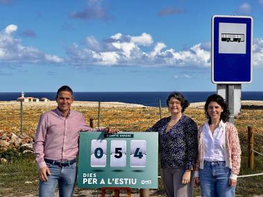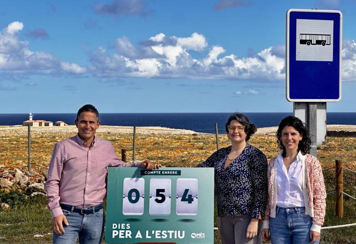 Els consellers de Més per Menorca, Josep Juaneda i Noemí García, acompanyats de la portaveu del PSM-Més per Menorca a Ciutadella, Maria Jesús Bagur, han demanat des de Punta Nati que aquest estiu es tornin a activar el servei de transport públic a espais naturals protegits.