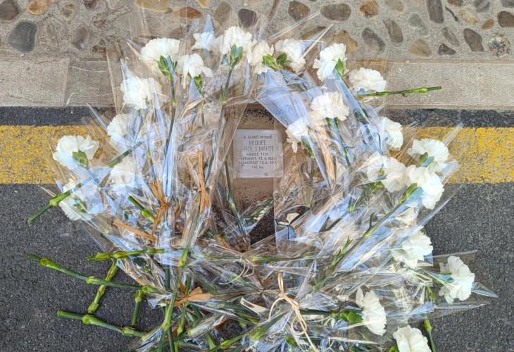 Miquel Fiol Martí tenia 31 anys quan va ser capturat el 12 d'agost del 1936 a sa casa, al carrer del Camp Roig d'Alaró. Les restes de Miquel Fiol Martí mai no han estat trobades, però aquest diumenge, els seus néts, Miquel i Teòfil, han col·locat davant del portal de la casa familiar una Pedra de la Memòria amb el nom i les dates clau a la breu vida del seu padrí.