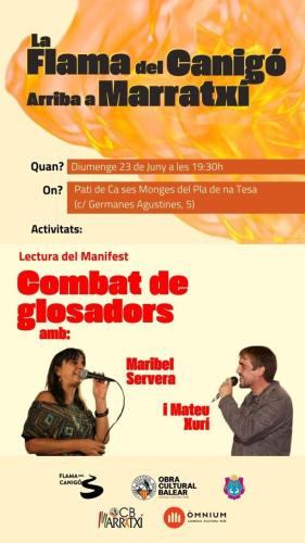 La Flama del Canigó arriba a Marratxí amb combat de gloses de Maribel Servera i Mateu Xurí