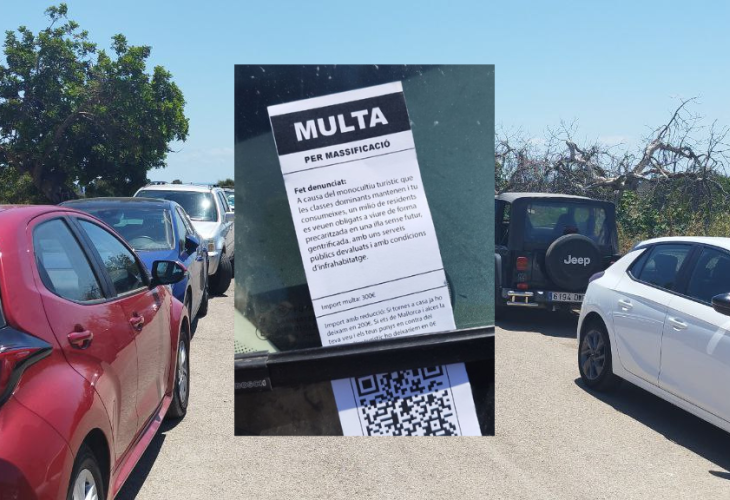La coordinadora anticapitalista de Manacor, Caterva, multà el passat diumenge un centenar de cotxes, en la seva majoria de lloguer, aparcats a la carretera de Cales de Mallorca, just a l’entrada del camí que condueix a Cala Varques.