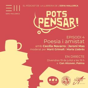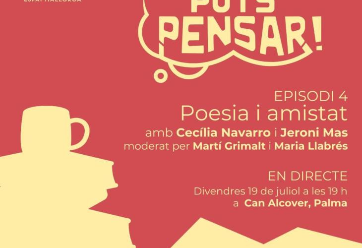 Aquest divendres 19 Can Alcover acollirà en directe el quart episodi del pòdcast Pots pensar! En aquesta ocasió, la temàtica se centrarà en la poesia i l'amistat.