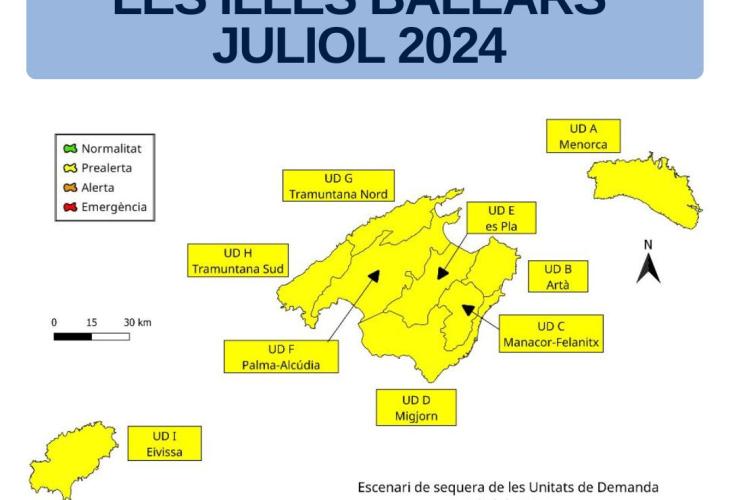 Les reserves hídriques de les Balears han caigut al 46% de la seva capacitat durant el mes de juliol, un descens de 4 punts percentuals respecte al mes anterior i 9 punts percentuals per sota del mateix període de l'any passat, quan les reserves es trobaven al 55%. «Aquesta situació requereix una vigilància estricta i una gestió rigorosa dels recursos hídrics», han remarcat des del Govern.