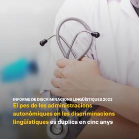 Enguany, el report recull 113 casos coneguts per l'entitat, una xifra semblant a la de 2022 però molt superior a les dels anys precedents. Una de les conclusions principals de l'informe és que el pes de les administracions autonòmiques en la generació de discriminacions lingüístiques ha augmentat els darrers anys. Bona part de les discriminacions d'aquest 2023, de fet, tenen el seu origen en les administracions autonòmiques, especialment en aquelles d'àmbit sanitari.