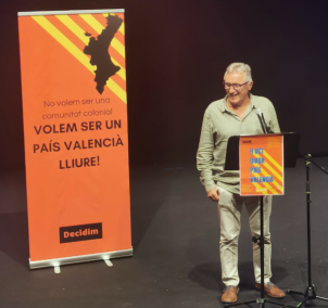 Zahia Guidoum, presidenta de la plataforma Decidim, ha dit en començar la intervenció que l'acte pretén denunciar que «el País Valencià era una colònia interna de l’estat espanyol».