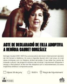 L’Ajuntament d’Esporles acordà, el passat 9 de juny, en sessió plenària, atorgar la distinció de Filla Adoptiva del poble d’Esporles, a títol pòstum, a Remígia Caubet González (1919– 1997), escultora mallorquina de reconeguda trajectòria artística.