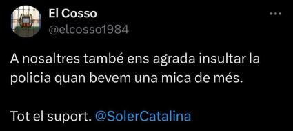 «A nosaltres també ens agrada insultar la policia quan bevem una mica de més. Tot el suport a Catalina Soler»
