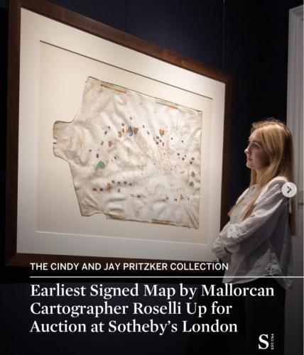 «Les ‘cartes portolanes’ varen marcar un punt d'inflexió en la cartografia. Datada el 1447, aquests mapes il·luminats són els més antics dels deu mapes de navegació signats per Petrus Roselli, el membre més prolífic de l'escola cartogràfica mallorquina», així presenta la coneguda casa de subhastes Sotheby's una de les ‘joies’ que fa comptes subhastar aquest dimarts 9 de desembre.