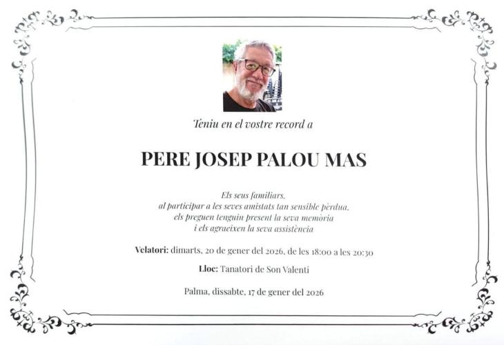 Aquest diumenge ha mort el matemàtic, físic, escriptor, docent, lluitador per la Llibertat i expresident de l’OCB d’Esporles, Pere Josep Palou i Mas, a l’edat de 70 anys.