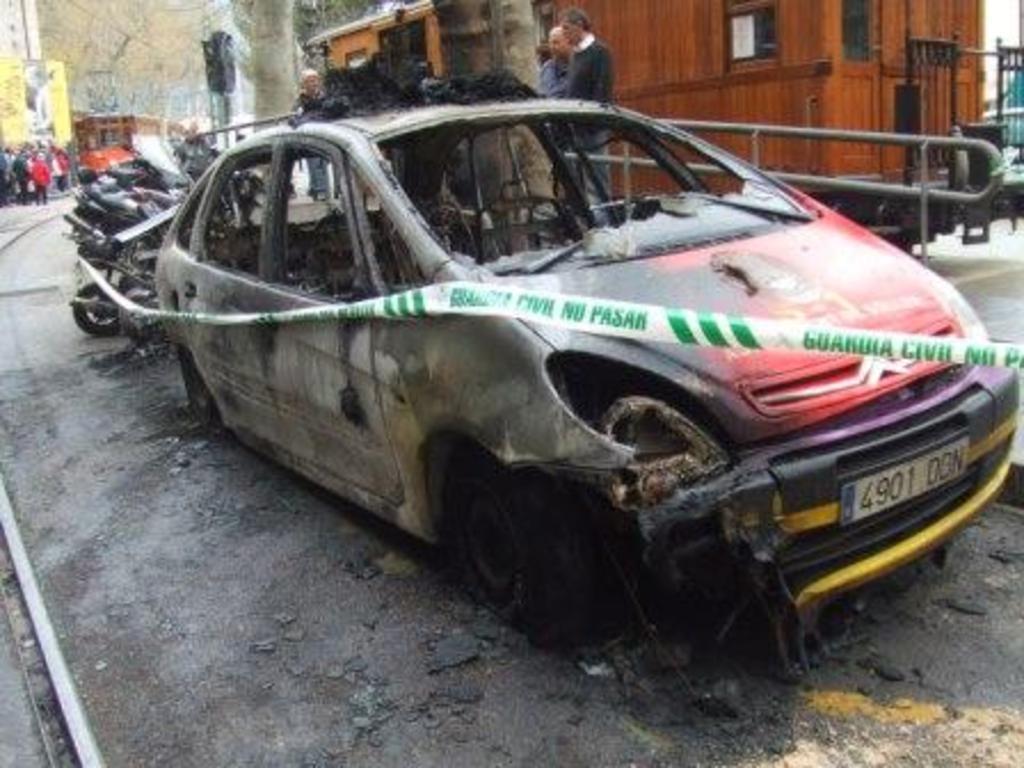 Els autors aprofitaren la sortida dels bombers per destruir totalment el cotxe patrulla en ple centre.