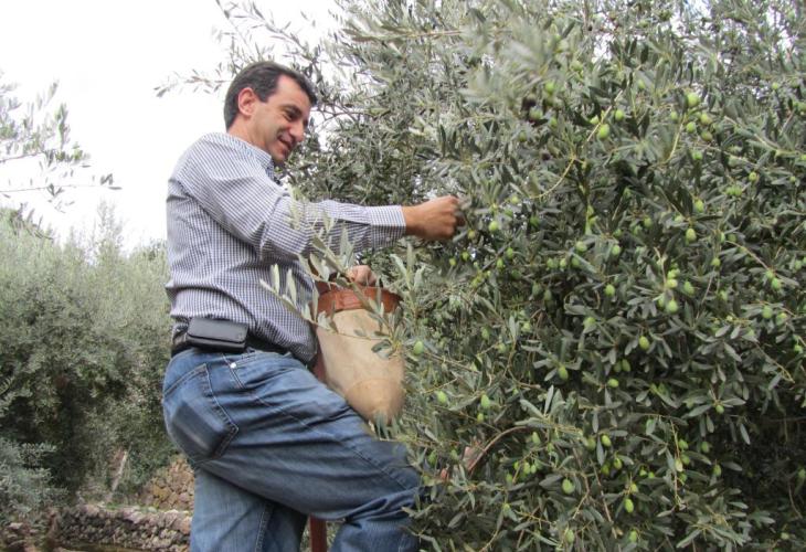 El conseller d'agricultura, Biel Company, s'ha sumat avui a una de les primeres jornades de recol·lecció.
