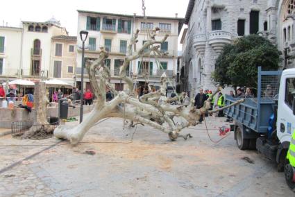 La polèmica de si s'hagués pogut evitar o no aquest desenllaç està servida, però mentrestant, ahir es va iniciar la tala davant la mirada de desenes de curiosos. Finalment quatre dels arbres se salvaran, mentre que tres seran eliminats al llarg de la setmana. De la resta quedarà només, de moment, el tronc gairebé nu. El batle, Carlos Simarro, va destacar que «s'intentaran reposar els arbres tallats amb altres importats, d'uns 10 metres d'alçada». Encara que l'Ajuntament segueix pendent de conèixer en cost l'actuació (més informació dissabte dia 25 en l'edició impresa).