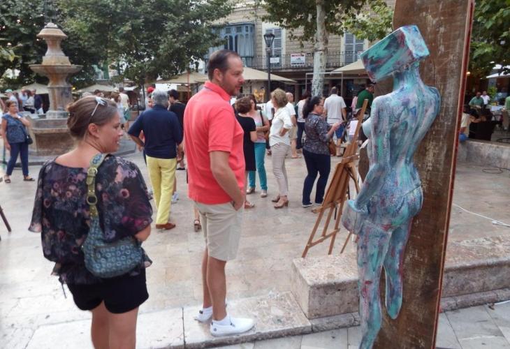 Més de 70 creadors plàstics de tots els estils i tendències es van donar cita dissabte a la nit a Sóller per participar en la VII Nit de l'Art, un esdeveniment que ja és un clàssic de l'estiu cultural de la Vall dels Tarongers.