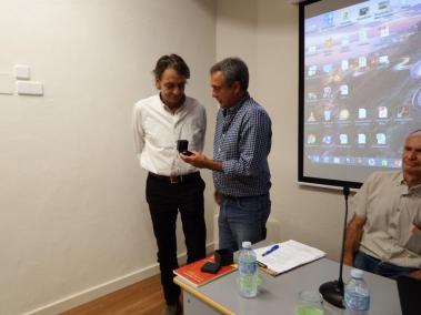 Miquel Gual, president de la Cooperativa li lliurà la distinció en el transcurs de l'Assemblea General