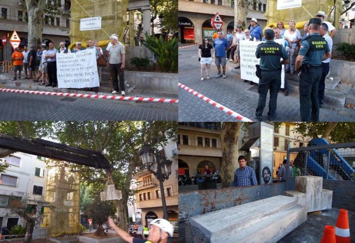 Personal de la brigada municipal d’obres ha procedit aquest dimarts a la retirada de la creu que remata el monument als ‘Caídos’ de la Guerra Civil, obra del prestigiós arquitecte mallorquí Gabriel Alomar. Dilluns ja es va instal·lar una bastida per poder dur a terme les feines i avui a primera hora s'ha eliminat el simbol enmig de la protesta d'un grup de ciutadans que des de poc després de les set del matí s'han concentrat al lloc. Alguns han exhibit una pancarta en la que asseguraven que l'actuació era "un atac al cristianisme". D'altres protestaven per motius polítics o per considerar que el monument "forma part de la història de Sóller"