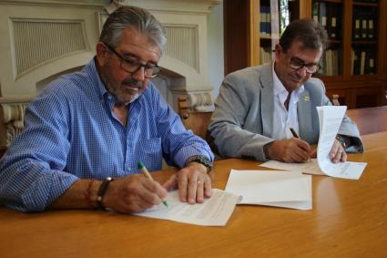 El president de l’Associació Museu Balear de Ciències Naturals (AMBCN), Amador Estarellas, i el rector de la Universitat de les Illes Balears, Llorenç Huguet, han signat aquest divendres un acord marc de col·laboració entre les dues institucions per continuar treballant en la formació d’estudiants i en la recerca.
