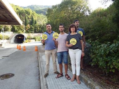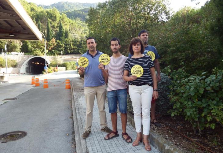 Unes 20 persones han desplegat una pancarta sobre la galeria del túnel reclamant la gratuïtat del peatge.