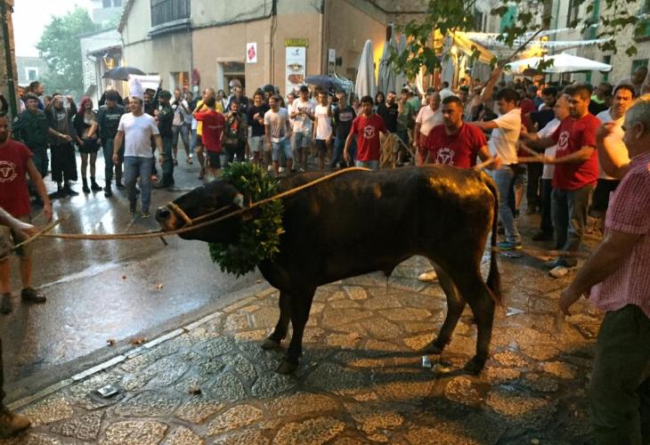 Centenars de persones s’havien apostat al llarg del camí de pedra per on es baixava el bou en un recorregut que va durar menys de 10 minuts. Precisament aquesta era una de les grans novetats de la festa d’enguany: la recuperació de l’antic recorregut pel camí de Tramuntana, que desemboca a la placeta de l’Església i després a la plaça. L’altra novetat inclosa per l’Ajuntament era la utilització d’un toro de raça «mansa» en lloc de «brava» pel que oficialment la celebració no va precisar ja d’un director de lídia, preceptiu fins ara.