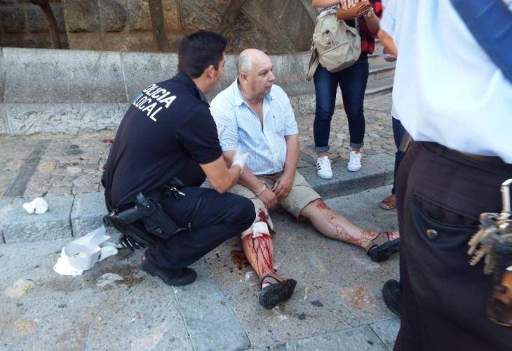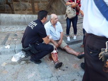 Sigui com sigui l’home va perdre l’equilibri en tocar en terra degut a la velocitat i un dels estreps li enganxà la cama dreta provocant-li una gran ferida que sagnà profusament. La Policia Local el va atendre i li aplicà un torniquet fins que arribà l’ambulància ja que el tall era molt profund. Per fortuna, i sols per pocs centímetres, l’home no va caure entre els dos vagons la qual cosa probablement hagués estat fatal.