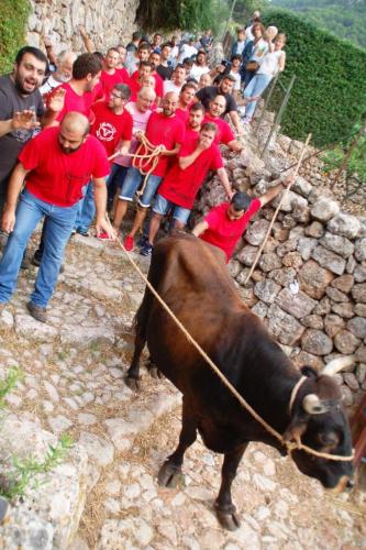 Fornalutx va celebrar aquest divendres la Baixada del Bou, amb el mateix format estrenat l’any passat i sense incidents. Un grup de persones es van manifestar contra la festa i en defensa dels animals i van ser increpats per una part del públic però la Guàrdia Civil els va conduir fora del lloc de la celebració. El bou, un cap de bestiar cedit a l’esdeveniment per l’Associació de Criadors de Raça Bovina Mallorquina. Poc abans de les 8 del matí nombrosos joves esperaven el bou a la mateixa carretera ila colla de corda, una dotzena de persones van ser les encarregades de conduir-lo escales avall fins devora l’església, on es concentrava la major part del públic. El recorregut és d’aproximadament 500 metres amb forta pendent i es va realitzar en pocs minuts. El bou estava subjecte per un cabestrell i una sola corda, tal com estipula el reglament de la festa, ara ja totalment regulada per la Llei Balear de Protecció Animal.