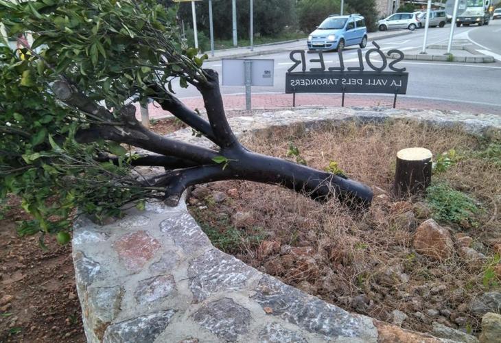 Tallen de matinada el taronger que donava la benvinguda a Sóller
