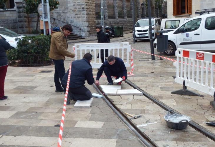 Operaris de la Brigada Municipal de Bens i Serveis han procedit aquests dies a reparar varis sectors de l’empedrat de plaça que es trobava en molt mal estat. Aprofitant l’aturada del tramvia s’han substituït lloses de pedra.