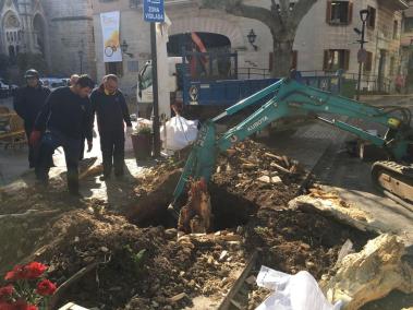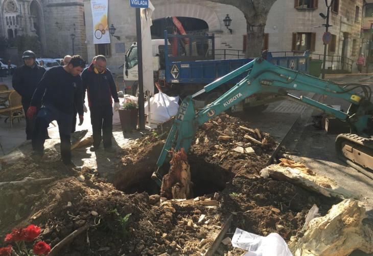Aquest dilluns han començat es feines per arrabassar les soques de dos vells plàtans morts de la Plaça Constitució. Els treballs, realitzats per una empresa local d'excavació i personal de la brigada, es centraran per ara en la substitució de dos arbres, un devora la font de Plaça i l'altra davant l'església. L'extracció de les soques mortes i arrels no estat exempta de certa dificultat i ha comptat amb un bon nombre 'd'observadors'. Segons s'ha informat des de l'Ajuntament aquesta mateixa sertmana es sembraran dos arbres nous al seu lloc. Seran lledoners, tal i com es va decidir durant un procés participatius.