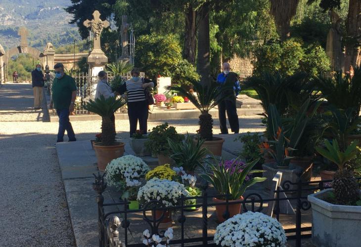 El cementeri municipal de Sóller ofereix aquest matí un aspecte inusual en una data tan assenyalada com la festivitat de Tots Sants. Tot i ser un dia d'ambient primaveral els sollerics no han acudit massivament a la tradicional visita.