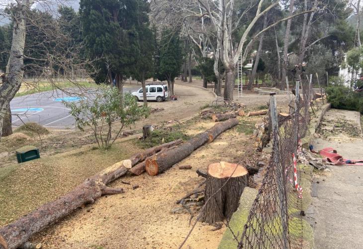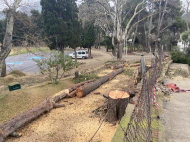 L’Ajuntament ha encarregat la tala completa de sis pins de l’Infante Lois després que la ventada esqueixàs les branques de dos dels exemplars del camp d’esports. El regidor de Medi Ambient, Joan Ruiz, ha explicat que no només tallaren els dos que s’havien esqueixat sinó tots els que es troben just enfront del Col·legi Públic Pere Cerdà per «evitar que en el futur alguna branca caigués dins l’escola». Les tasques començaren el passat dissabte i s’han estès durant tota la setmana.