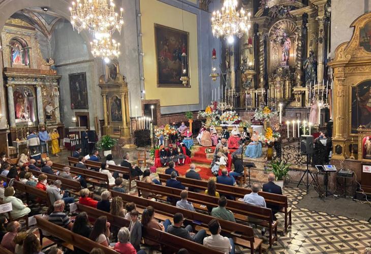 L'acte de presentació dels personatges infantils ha començat avui horabaixa a les 20.30 h a la parròquia de Sant Bartomeu. Les Valentes Dones i la resta de personatges històrics han desfilat un a un fins arribar a l'altar de l'església. La celebració presentada per Elena Estarellas i Antoni Quetglas hi han assistit 270 persones que prèviament havien reservat.