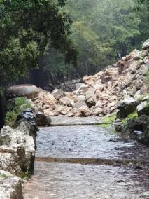 Les fortes pluges dels darrers dies a Mallorca han tombat el monument del IV Misteri de Lluc. Segons informa el Bisbat de Mallorca, durant el capvespre de dia 11 de novembre els van avisar de la caiguda del monument situat al turó. Aquesta construcció ja es trobava en perill d'esfondrament a causa d'una mala fonamentació des del mateix moment de la seva construcció, que s'havia agreujat amb el pas dels anys. Les pluges ininterrompudes a Escorca han provocat un sobtat agreujament de la seva situació, causant el col·lapse de tot el monument. Els fets ja estan en coneixement del Bisbat de Mallorca, l'Ajuntament d'Escorca i del Consell de Mallorca. Segons ha informat en una nota de premsa, durant aquest divendres es procedirà a la inspecció per part dels tècnics per avaluar de manera més precisa els danys causats, encara que en una primera inspecció visual del lloc dels fets han pogut observar que els elements escultòrics no han patit danys irreparables. Per aquest motiu, quan les condicions meteorològiques ho permetin i després de rebre les indicacions dels tècnics, es procedirà a la retirada ordenada i custòdia dels elements escultòrics per a una posterior reconstrucció.