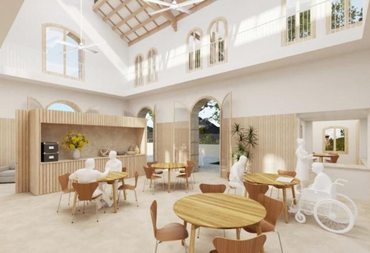 El passat mes de desembre, l’Ajuntament de Sóller signà el conveni amb el Govern per a fer possible el centre de dia. Aquest compta amb un edifici principal, amb planta baixa i una part central amb més altura, que ocupa una superfície de 310 m2 i un conjunt d’edificacions annexes menors d’un total de 153 m2. Per als arquitectes, «la necessitat de disposar el programa funcional ocupant dos edificis independents fa imprescindible la construcció d’un nou cos que fa de nexe i permet realitzar totes les circulacions de l’edifici cobert, i alhora serveix com a accés principal al centre de dia». A més, per facilitar l’arribada i la recollida dels usuaris es manté l’espai diàfan que queda entre la façana de l’edifici i el muret existent.