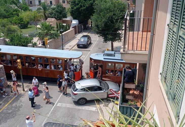 Un turisme ha col·lidit amb el tramvia en el seu pas a sa Calatrava. El vehicle ha envaït la via just quan el comboi travessava rompent el semàfor i el mirall instal·lats a la travessa. El cert és que aquests dies els tramviaris han hagut d'aturar la màquina en més d'una ocasió ja sigui perquè un turista es feia un selfie o per la quantitat de vianants que hi ha durant el seu recorregut.