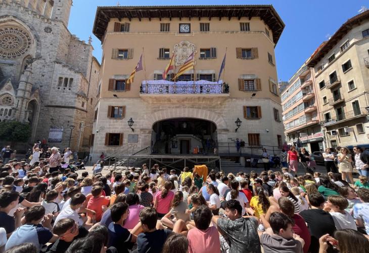 El passat dimecres es va celebrar el Dia Mundial del Medi Ambient. Per aquest motiu, Es Convent (Col·legi Sagrats Cors) va decidir organitzar un esdeveniment que implicà tots els alumnes del seu centre. Aquest consistí a penjar una pancarta de grans dimensions al balcó de l’Ajuntament, la qual serà allà durant una setmana, i que porta escrit el missatge de «Facem cura de la Terra, és l’única llar».