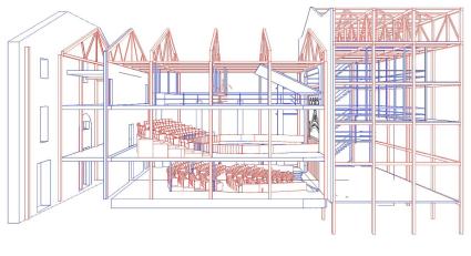 Pel que fa a l’estructura, se n’aixecarà una de nova per reforçar tot el perímetre de l’edifici i es redistribuiran les sales que plantejava l’anterior projecte. D’aquesta manera, es manté una sala per la Junta del Defensora Sollerense, però en una altra banda i es modifiquen els camerinos i serveis. Val a dir que des de l’equip tècnic es proposà que el Defensora servís només com a teatre o auditori i no com espai polivalent.